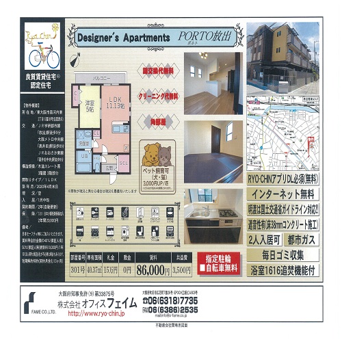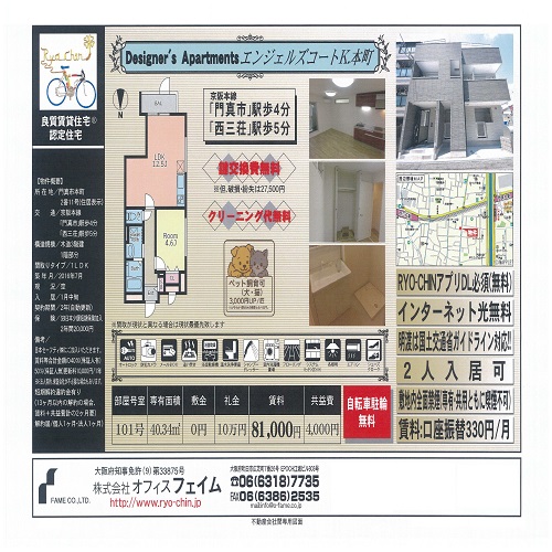 駅から徒歩4分の好立地!ららぽーと門真も自転車で行けます! インターネット無料!猫ちゃんワンちゃんOKです!